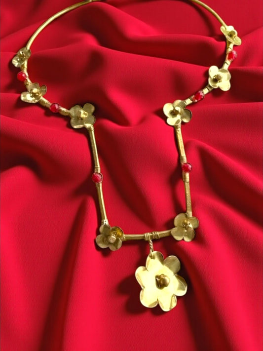 Dancing Lilies Brass Hasli Necklace