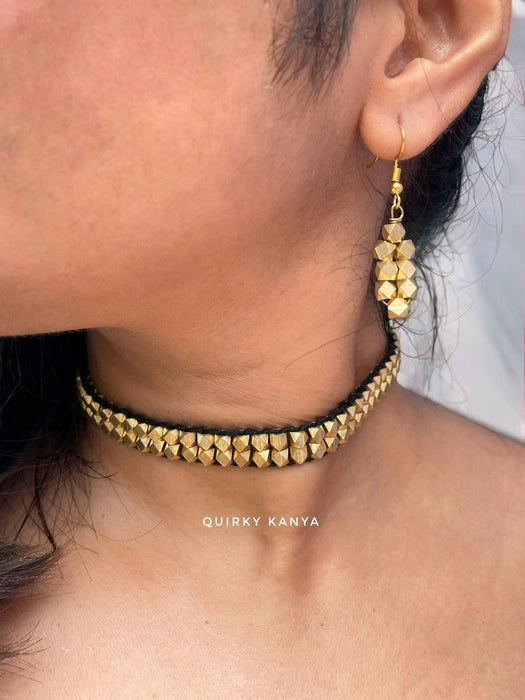 Bangaliana Brass Choker Necklace Jewelry Set (Necklace, Stud Earrings)