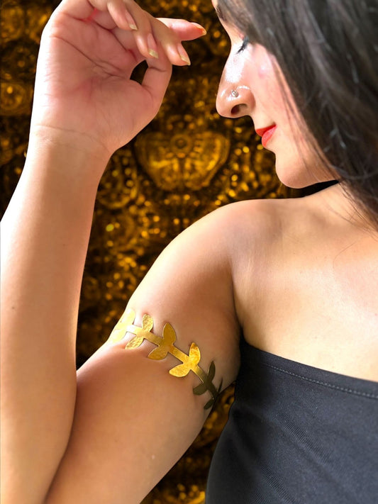 Curvy Leaf Wrap Brass Arm Cuff