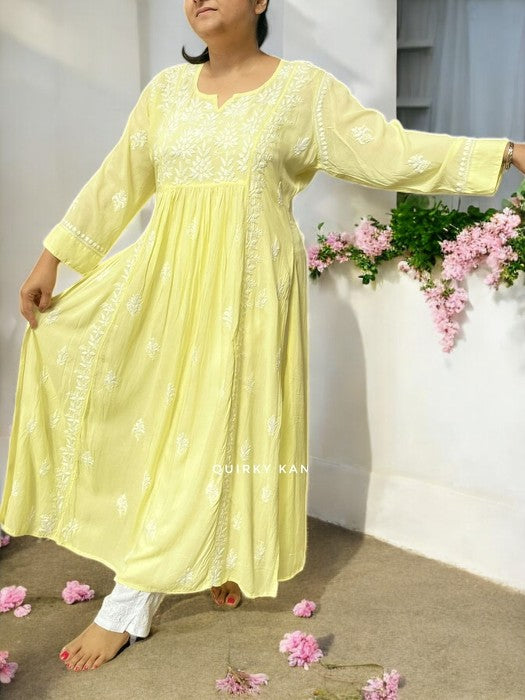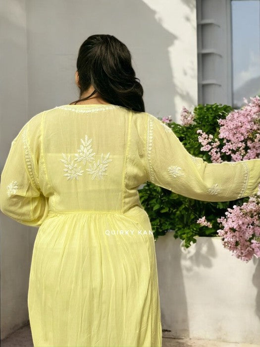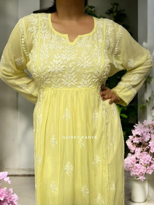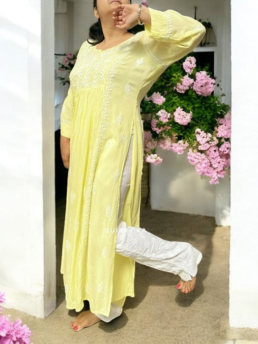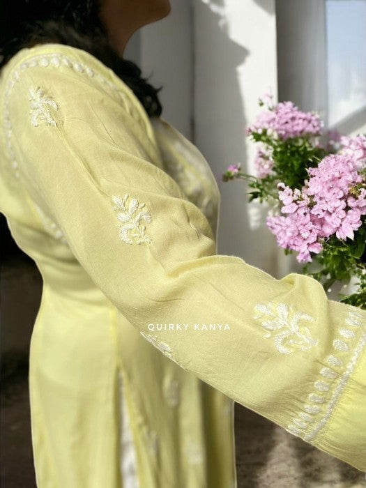 Indulge in the luxury of this Akanksha Chikankari Rayon Kurta in a stunning shade of yellow. Handcrafted with intricate Chikankari embroidery, this kurta exudes sophistication and exclusivity. Made with premium quality rayon, it offers comfort and style, perfect for any occasion. Elevate your wardrobe with this exquisite piece.