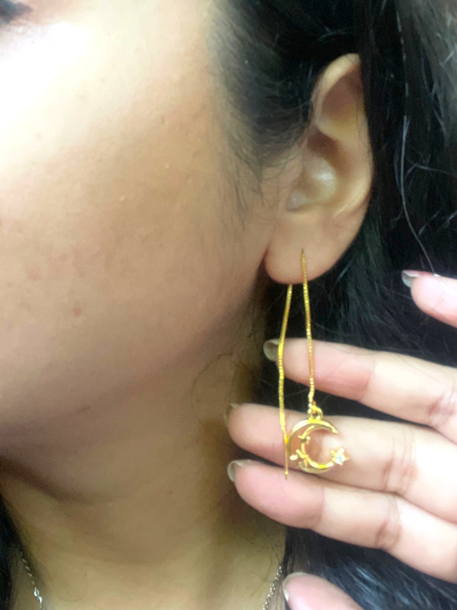 Add a magical sparkle to your day with these Crescent Moon Needle AD Stone Earrings. Featuring shimmering AD stones set in a charming crescent moon design, they bring a playful shine to every moment. Perfect for those who love a touch of celestial whimsy, these lightweight earrings make your style glow with fun and elegance.Share