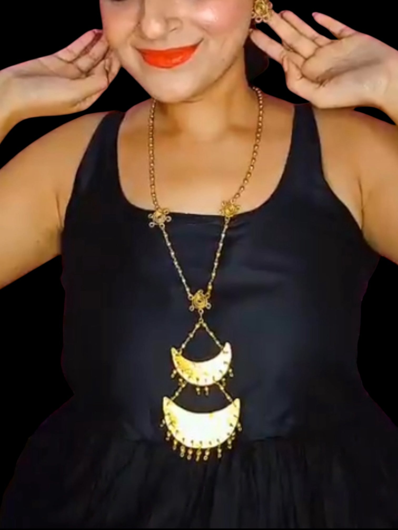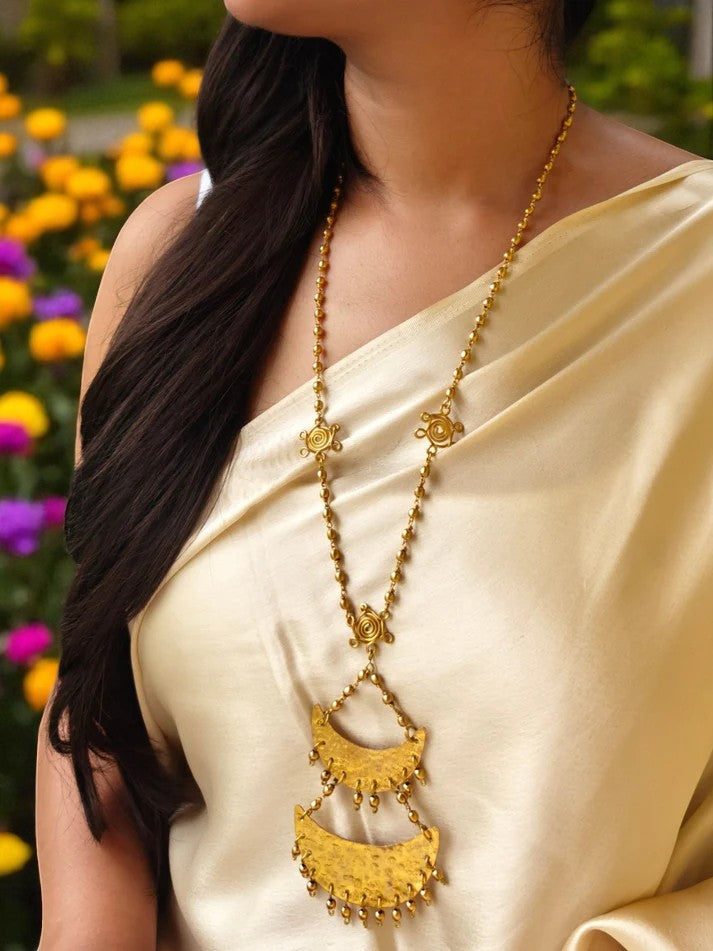 - Dwitiya Chandni Moon Brass Long Pendant Chain Necklace
