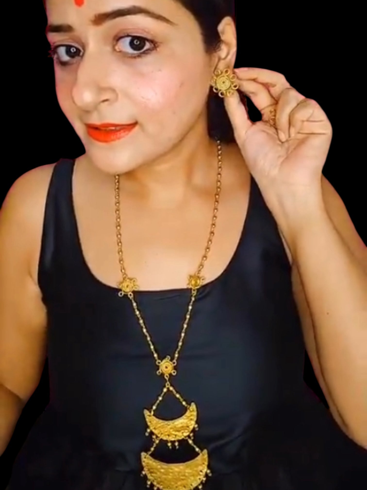 Dwitiya Chandni Moon Brass Long Pendant Chain Necklace Jewelry Set (Necklace + Earrings)