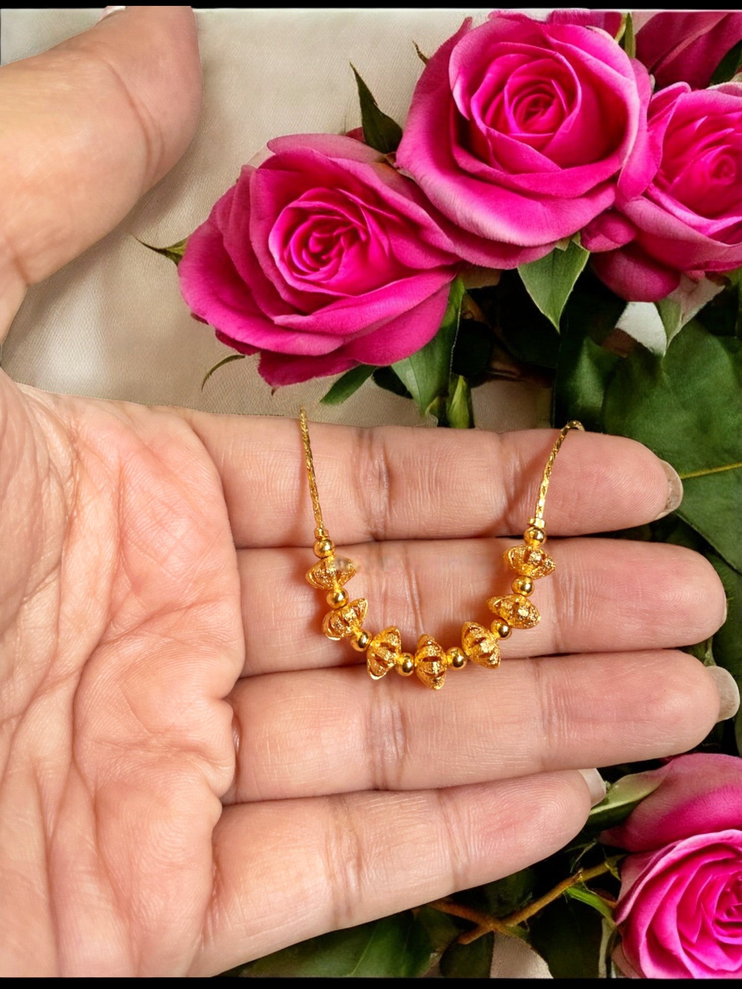 Brighten your look with the Flat Flowers Golden Necklet - Mini. This delicate piece features charming flat flower designs that add a cheerful, sunny vibe to any outfit. Perfect for everyday wear or special moments, it brings a dash of playful elegance and warmth wherever you go. Lightweight and easy to pair, this necklet makes a delightful gift or a fun treat for yourself!Share