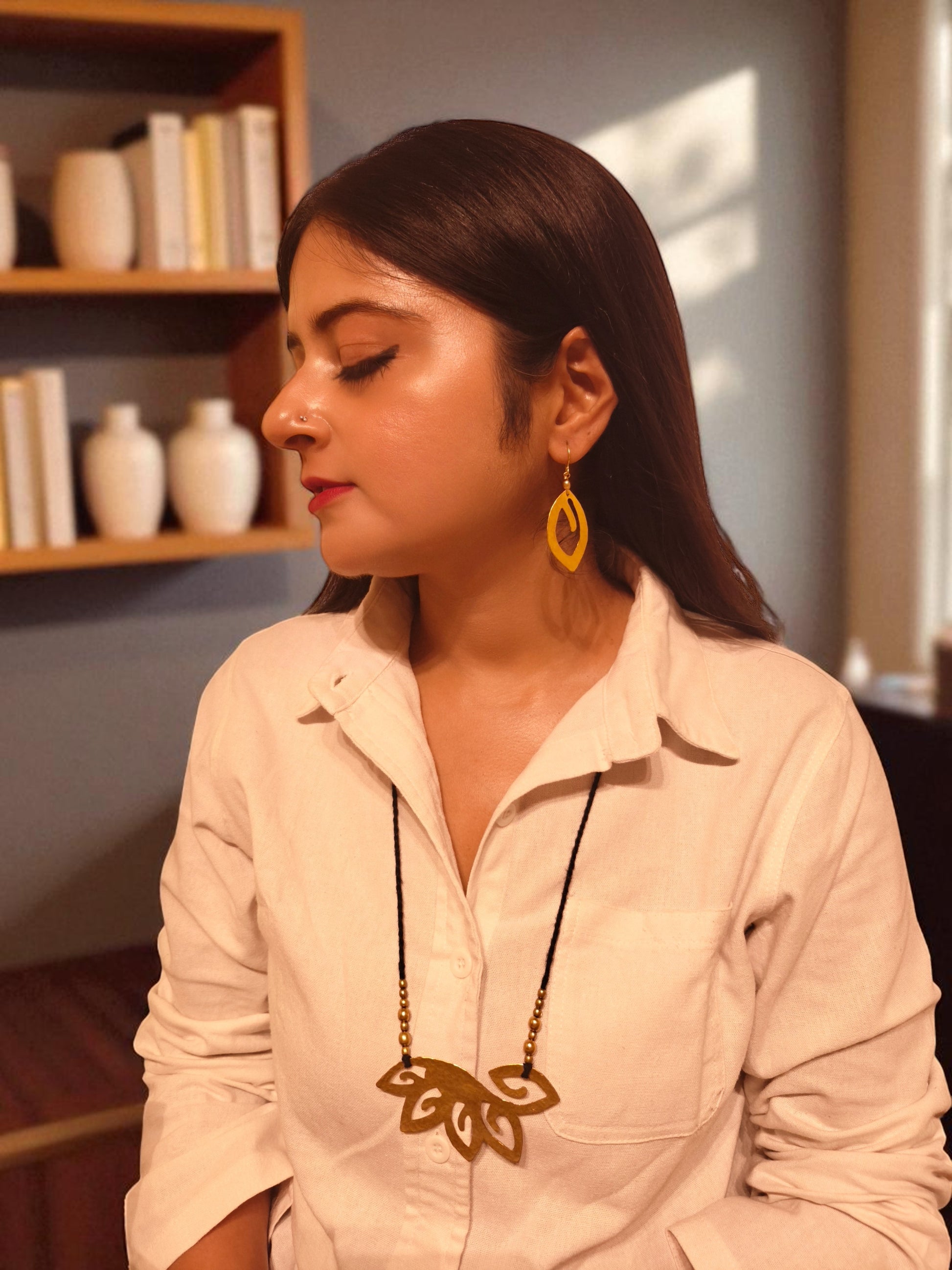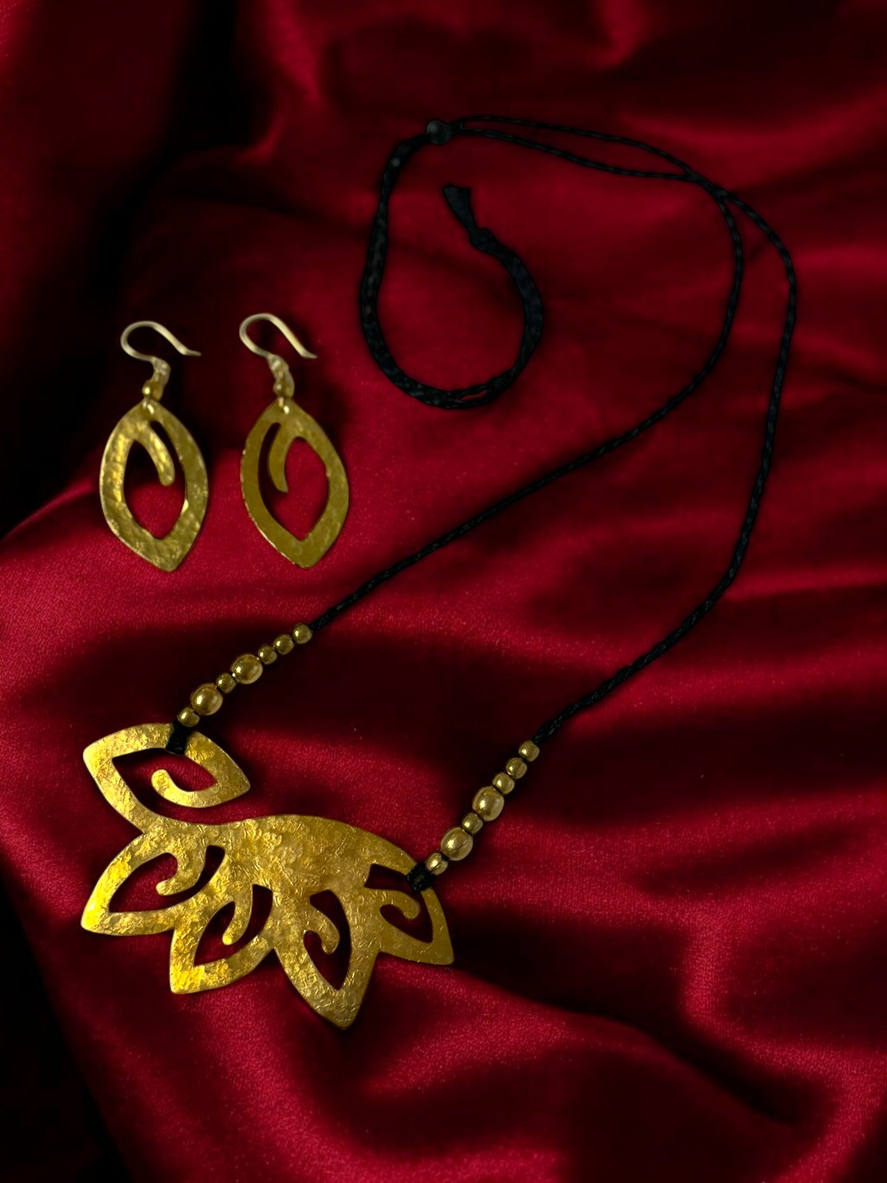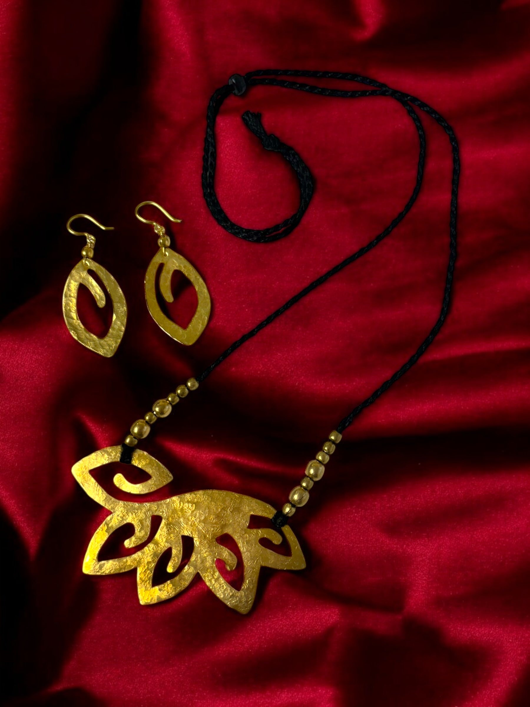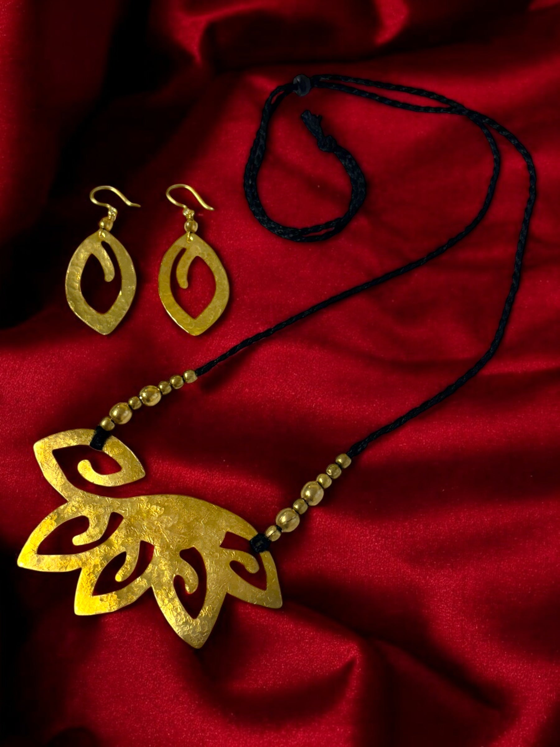 Floral Cutout Brass Jewelry Set (Necklace + Dangler Earrings)