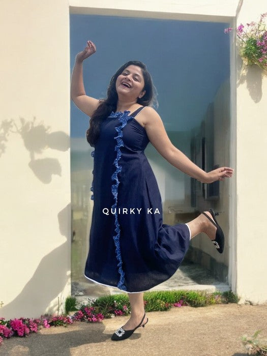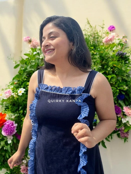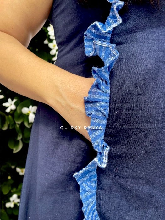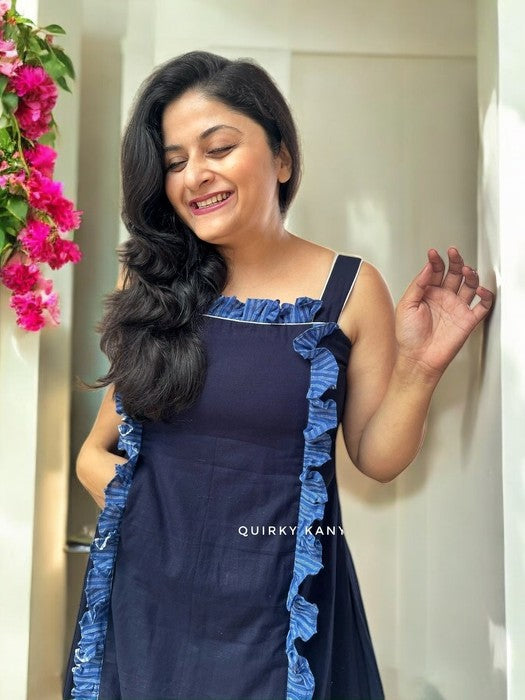 Katerina Gamchha Accent Cotton Frilled A-line Dress