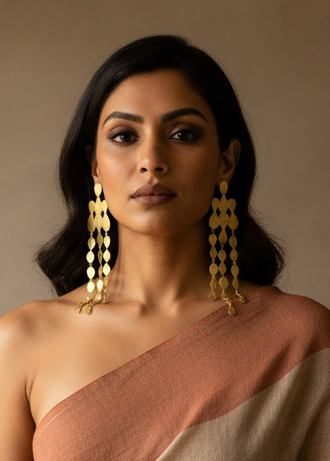 Style brass jewelry with sarees and western outfits for a bold fusion look.