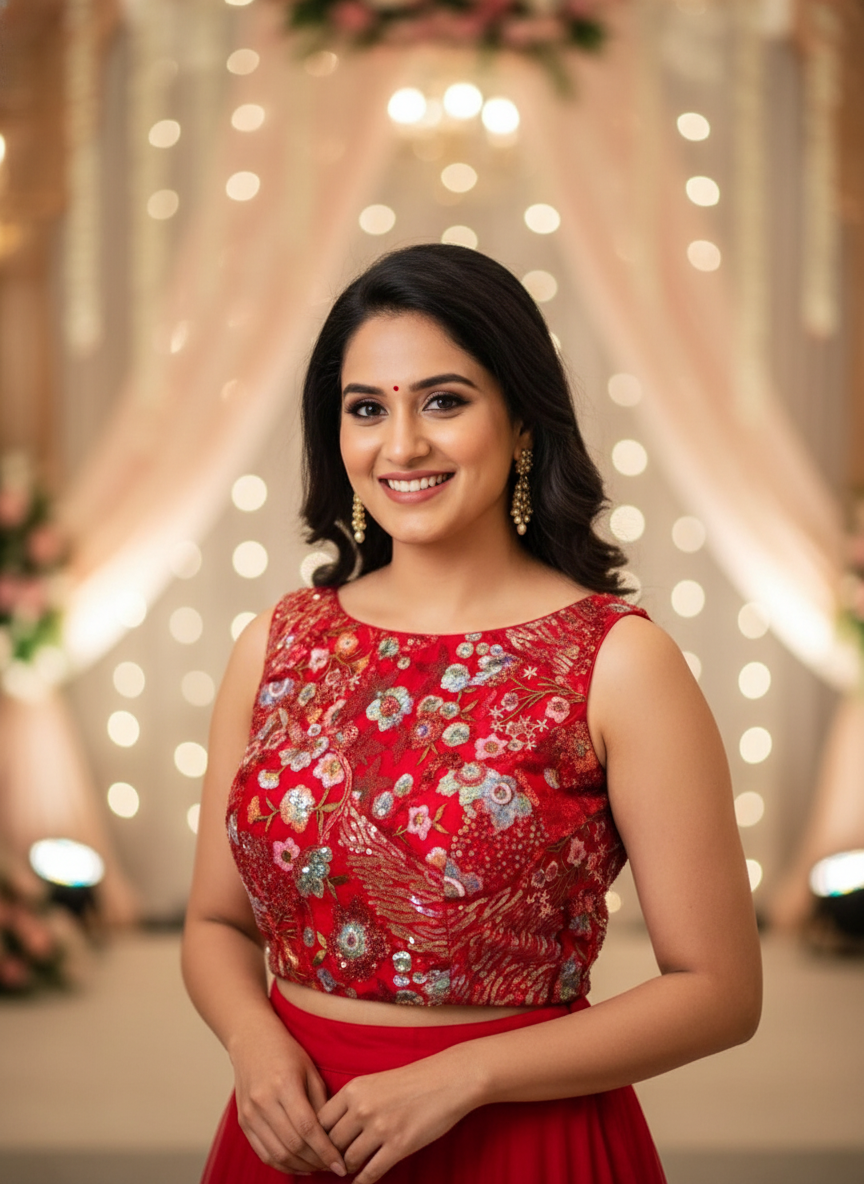 Introducing our Sitara Sequins Designer Blouse in luxurious red. Adorned with intricate sequins, this premium piece exudes elegance and sophistication. Elevate any outfit with its unique design, perfect for any special occasion. Make a statement and exude confidence with Sitara.