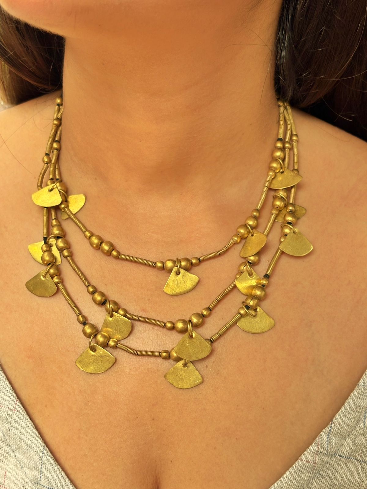 Handmade with love by local artisans, these stunning brass necklaces are designed to turn heads wherever you go. Crafted with intricate detail and passion, each piece adds a bold, eye-catching touch to any outfit.